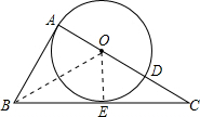 分析:连接OB,OE,由AD为圆O的直径得到OA=OE,由BC为圆O的切线,得到OE垂直于BC,利用SSS得出三角形ABO与三角形BEO全等,由全等三角形的对应角相等得到∠BAO=∠BEO=90°,即OA垂直于AB,即可得证.