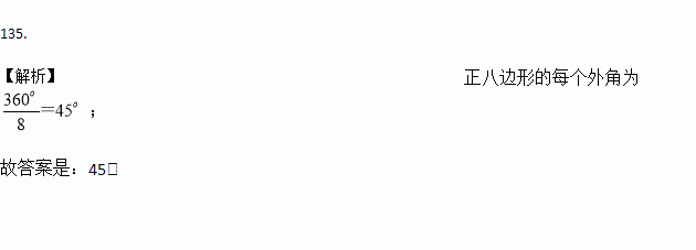 正八边形的每个外角为____________度.