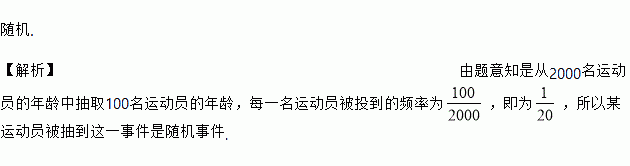 为了了解参加某运动会的2000名运动员的年龄情况,从中抽查了100名运动员的年龄,“某运动员被抽到”这一事件是______事件.