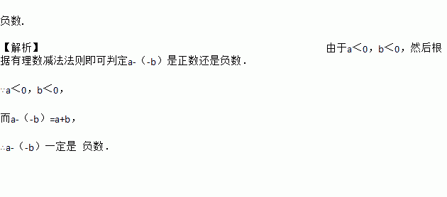 若a<0,b<0,则a-(-b)一定是__________(填负数,0或正数).