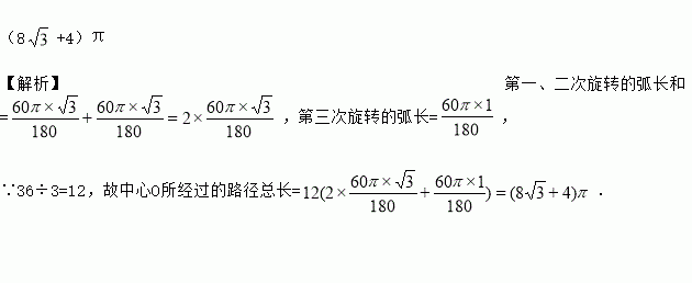 如图,菱形ABCD中,AB=2 ,∠C=60°,菱形ABCD在直线l上向右作无滑动的翻滚,每绕着一个顶点旋转60°叫一次操作,则经过36次这样的操作菱形中心O所经过的路径总长为(结果保留π) .
