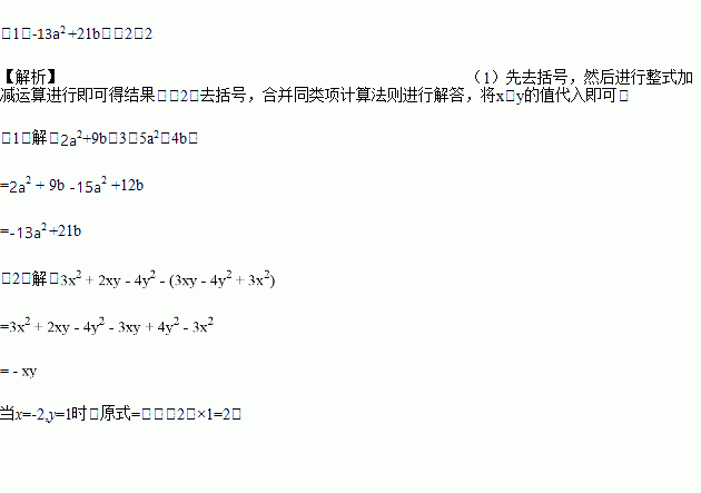 (2)先化简,再求值:,其中x=-2,y=1.