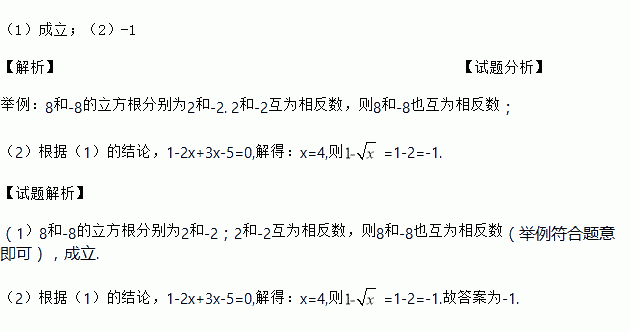 我们知道a+b=0时,a3+b3=0也成立,若将a看成a3的立方根,b看成b3的立方根,我们能否得出这样的结论:若两个数的立方根互为相反数,则这两个数也互为相反数.