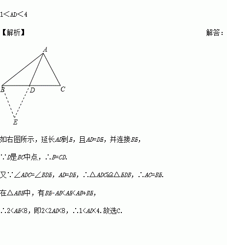 已知△ABC的边AB=3,AC=5,那么边BC上的中线AD的范围为___.
