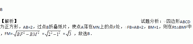 如图,把正方形纸片ABCD沿对边中点所在的直线对折后展开,折痕为MN,再过点B折叠纸片,使点A落在MN上的点F处,折痕为BE.若AB的长为2,则FM的长为( )