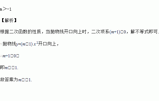 已知抛物线y=(m+1) x 2开口向上,则m的取值范围是___________.