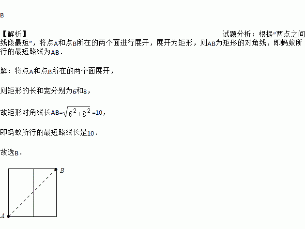 已知蚂蚁从长、宽都是3,高是8的长方形纸箱的A点沿纸箱爬到B点,那么它所行的最短路线的长是( )