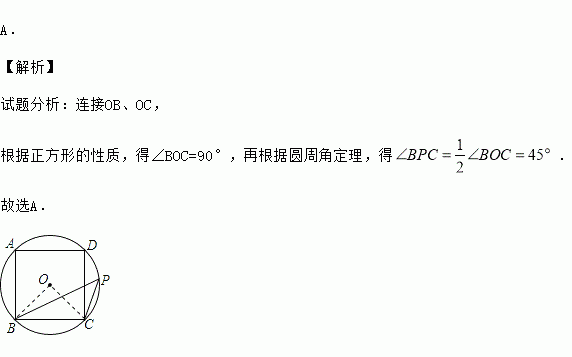 如图,四边形ABCD是⊙O的内接正方形,点P是上不同于点C的任意一点,则∠BPC的大小是( )