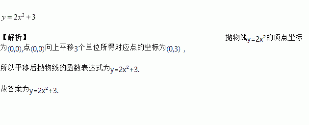 在平面直角坐标系中,将抛物线 向上平移3个单位,得到的抛物线的函数表达式为 .
