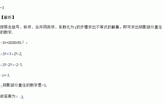 如图,小雨把不等式3x+1>2(x﹣1)的解集表示在数轴上,则阴影部分盖住的数字是_____.