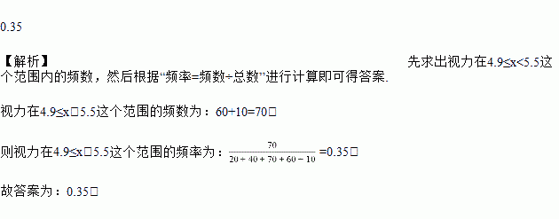 某校对初一全体学生进行一次视力普查,得到如下统计表,视力在这个范围的频率为__________.