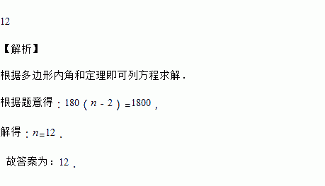 一个n边形的内角和是1800°,则n=______.