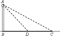 如图,一旗杆直立于平地上,其高为AB.当阳光与地面成30°时,旗杆的影子BC的长为6米;当阳光与地面成45°时,旗杆的影子BD求DC的长.(精确到0.1 m,参考数据: