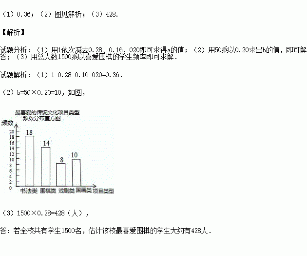 ijУΪ¸üºÃµØ¿ªÕ¹¡°´«Í³ÎÄ»¯½øÐ£Ô°¡±»î¶¯£¬Ëæ»ú³é²éÁ˲¿·ÖѧÉú£¬Á˽âËûÃÇϲ°®µÄ´«Í³ÎÄ»¯ÏîÄ¿ÀàÐÍ£¨·ÖΪÊé·¨¡¢Î§Æå¡¢Ï·¾ç¡¢¹ú»¹²4Àࣩ£¬²¢½«Í³¼Æ½á¹û»æÖƳÉÈçϲ»ÍêÕûµÄƵÊý·Ö²¼±í¼°ÆµÊý·Ö²¼Ö±·½Í¼.