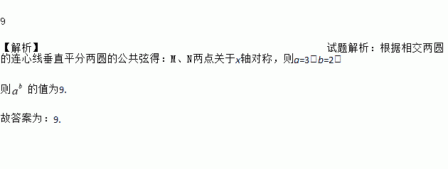 已知点A,点B均在x轴上,分别以A,B为圆心的两圆相交于M(3,-2),N(a,b)两点,则ab的值为_______.