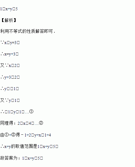 已知x﹣y=3,且x>2,y<1,则x+y的取值范围是_____.