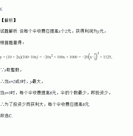 个伞租出,…,为了投资少而获利大,每个每天应提高( )![]()