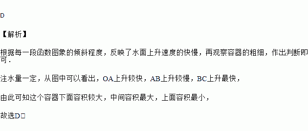 均匀地向一个容器注水,最后将容器注满在注水过程中,水的高度h随时间t的变化规律如图所示,这个容器的形状可能是