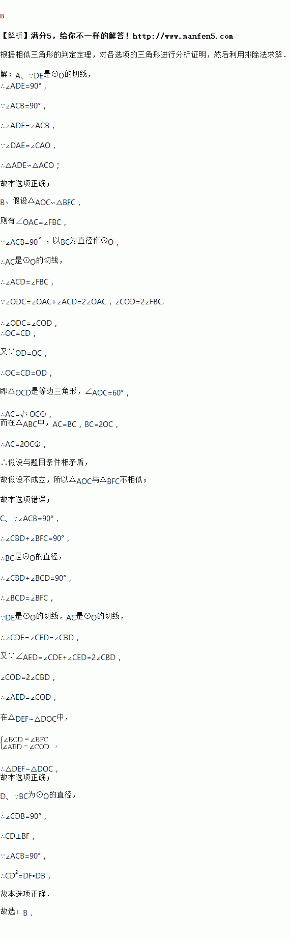 C. △DEF∽△DOC D. CD2=DF•DB