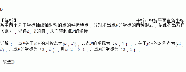 点P关于x轴的对称点为,关于y轴的对称点为,那么点P的坐标是( )
