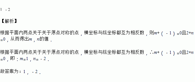 平面直角坐标系内点与关于原点对称,则________和________.