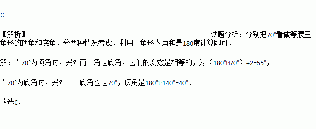 C. 55°,55°或70°,40° D. 以上都不对