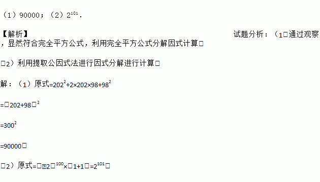 (2)(﹣2)100+(﹣2)100.
