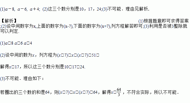 (3)这样圈出的三个数的和可能是64吗?为什么?