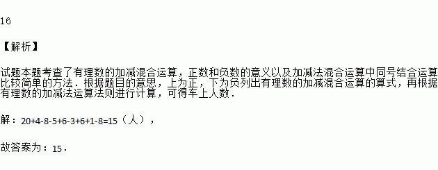 某公交车上原坐有 22 人,经过 4 个站点时上下车情况如下(上车为正,下车为负)(+4,-8),(-5,6),(-3,6),(+1,-7),则车上还有________人.