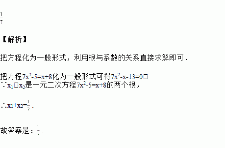 设x1,x2是一元二次方程7x2﹣5=x+8的两个根,则x1+x2的值是_____.