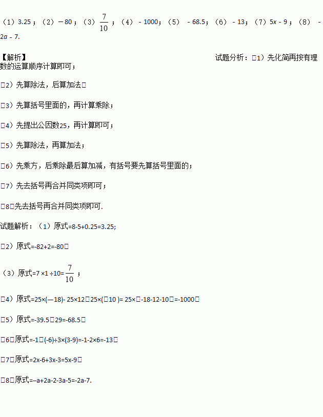 (1)8+(-5) -(-0.25) ; (2)-82+72÷36;