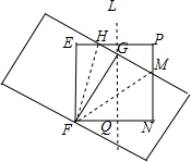 10.分析 如图,设纸片A与纸片B重合部分为四边形EFGH或四边形GFNM,根据已知条件得:EF=FG=FN=2,∠E=∠FGH=∠N=∠FGM=∠P=90°,证得Rt△EFH≌Rt△FGH,得到HG=EH,同理可证Rt△FGM≌Rt△FNM,得到GM=NM,设GM=NM=x,HG=EH=y,则PM=2-x,PH=2-y,HM=x+y,在Rt△PHM中,HM2=PH2+PM2,即(x+y)2=(2-x)2+(2-y)2 ①,根据相似三角形的性质得到$\frac{1}{2-x}=\frac{2}{x+y}$,于是得到y=-3x+4 ②,把②代入①,求出MN=$\frac{2\sqrt{3}}{3}$,EH=4-2$\sqrt{3}$,即可得到结果.
