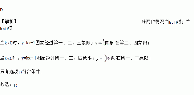 在同一直角坐标系中,函数y=kx+1与(k≠0)的图象大致是( )