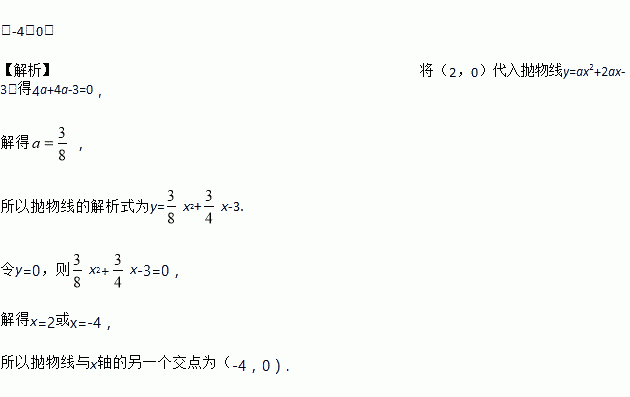若二次函数的图象与x轴的一个交点是(2,0),则与x轴的另一个交点坐标是____.
