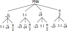 分析:首先根据题意画出树状图,然后由树状图求得所有等可能的结果与积是无理数的情况,再利用概率公式即可求得答案.