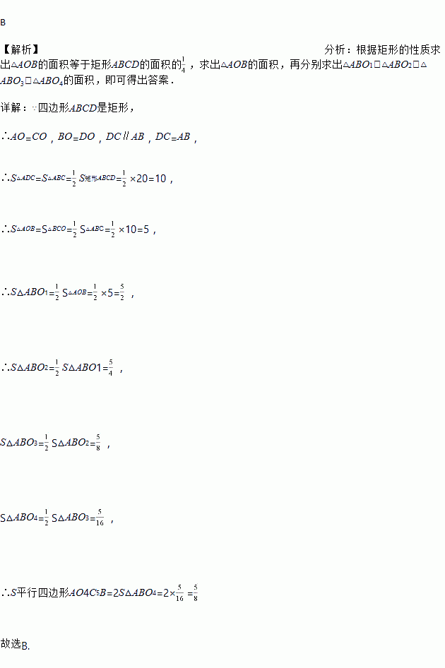 如图,矩形ABCD的面积为20cm2,对角线交于点O;以AB、AO为邻边做平行四边形AOC1B,对角线交于点O1;以AB、AO1为邻边做平行四边形AO1C2B;…依此类推,则平行四边形AO4C5B的面积为( )