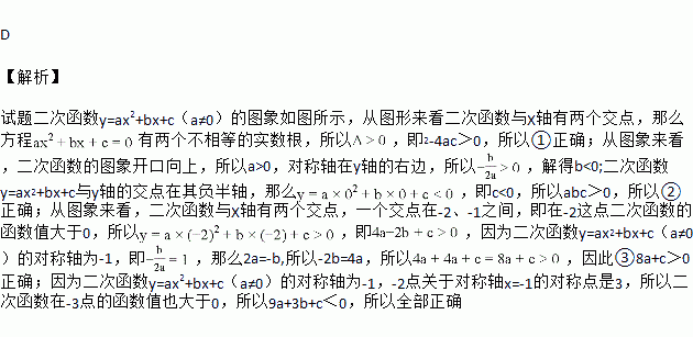 ①b2﹣4ac>0;②abc>0;③8a+c>0;④9a+3b+c<0.