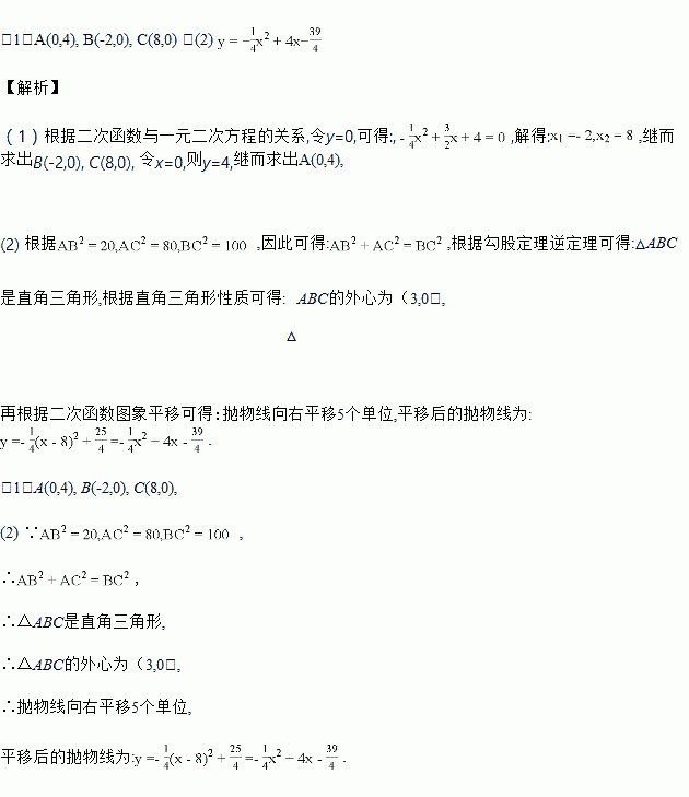 (2)向右平移抛物线,使平移后的抛物线恰好经过△ABC的外心,求出平移后的抛物线的解析式.