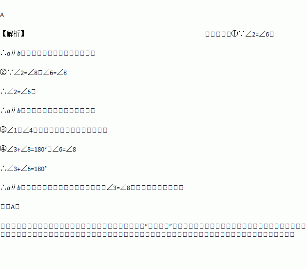 如图所示,直线a 、b被直线c所截,现给出下列四种条件:①∠2=∠6 ②∠1=∠7 ③∠1+∠4=180° ④∠3=∠8,其中能推断a∥b的条件的序号是( )