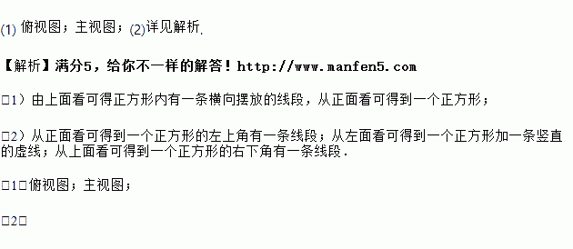如图所示,粗线表示嵌在玻璃正方体内的一根铁丝,请画出该正方体的主视图、左视图和俯视图.
