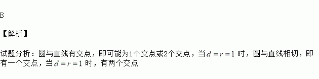 B 【解析】 试题分析:圆与直线有交点,即可能为1个交点或2个交点,当时,圆与直线相切,即有一个交点,当时,有两个交点