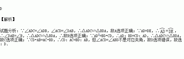 如图,AB是半圆O的直径,D,E是半圆上任意两点,连结AD,DE,AE与BD相交于点C,要使△ADC与△ABD相似,可以添加一个条件.下列添加的条件其中错误的是( )