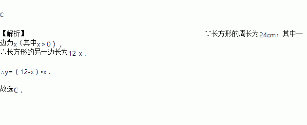 长方形的周长为24cm,其中一边为xcm(其中x>0),面积为ycm2,则这样的长方形中y与x的关系可以写为( )