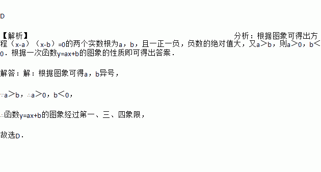 (2011?德州)已知函数y=(x﹣a)(x﹣b)(其中a>b)的图象如下面右图所示,则函数y=ax+b的图象可能正确的是( )