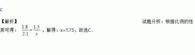 A. 1.3m B. 1.65m C. 1.75m D. 1.8m