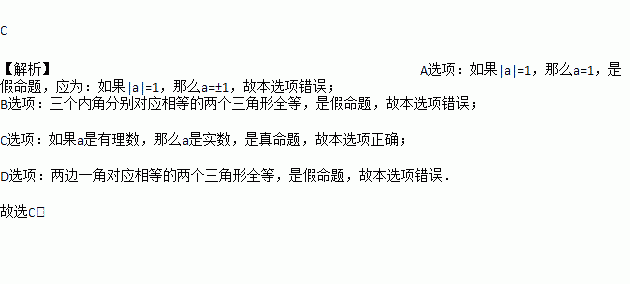 A. 如果=1,那么a=1; B. 三个内角分别对应相等的两个三角形全等;