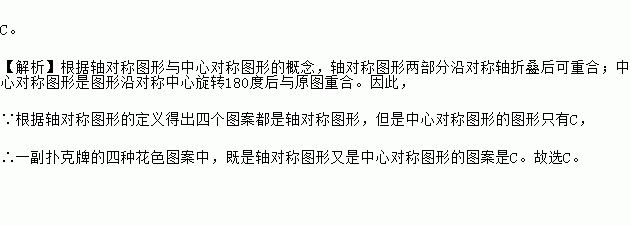 下列图案是一副扑克牌的四种花色,其中既是轴对称图形又是中心对称图形的是【 】