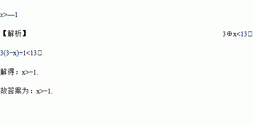x>—1 【解析】3⊕x<13, 3(3?x)+1<13, 解得:x>?1. 故答案为:x>?1.
