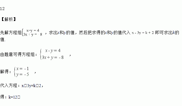 如果二元一次方程组 的解适合方程3x+y=-8,求k的值.