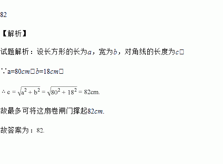 如图,一扇卷闸门用一块宽18cm,长80cm的长方形木板撑住,用这块木板最多可将这扇卷闸门撑起_____cm高.